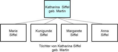 Katharina Siffel geb. Martin brachte von 1865 bis 1885 im Alter von 28 bis 48 Jahren 7 Kinder auf die Welt, davon 4 Töchter. Alle Kinder überlebten. Das war nicht selbstverständlich in der damaligen Zeit.