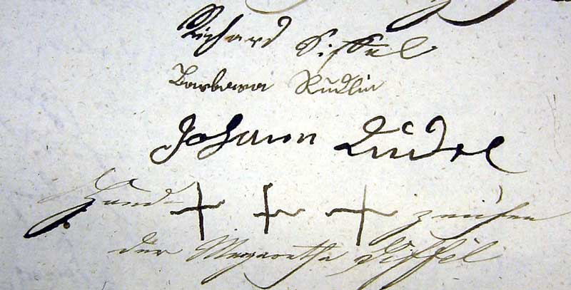 ( darunter Handzeichen der Margareth Siffel geborener Burgis; zu der Zeit war es nicht ungewöhnlich nicht Schreiben zu können )