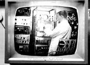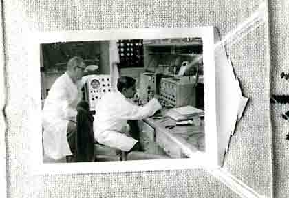 Monitorbild des Meßraumes am Van-de-Graaf Generator. ( Im Hintergrund Vielkanalanalysatoren. ) |