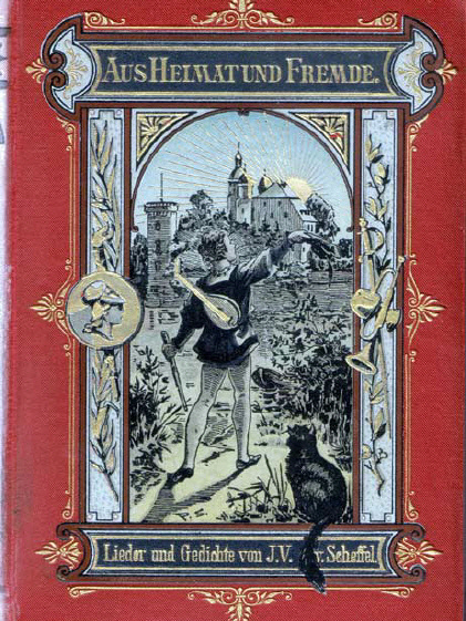 Mitte des 19. Jahrhunderts erlebte die Heimatliteratur durch historisierende Erzähler und Dichter einen breiten Aufschwung. Man spricht von der sogenannten Butzenscheibenromantik. Die Werke fanden großen Anklang im wilheminischen Bürgertum. Ein Vertreter dieser Stilrichtung war Victor von Scheffel geboren am 16. Februar 1826 in Karlsruhe. Er studierte Rechtwissenschaft und Germanistik und promovierte zum Doktor der Rechte. Der Trompeter von Säckingen machte ihn schon mit jungen Jahren berühmt. Das Bild oben entstand anlässlich seiner Romreise 1852. Dort entfalteten sich seine poetischen Talente und er vernachlässigte die von ihm geliebte Malerei. Ab 1859 besuchte er das Obermaintal und machte auch Wanderungen zum Staffelberg. Mit seinem Gedicht : Wohlauf die Luft geht frisch und rein .. setzte er dem Staffelberg und dem Eremiten Ivo Hennmann (1824-1900) ein bleibendes Denkmal. Das Gedicht wurde später vertont und ist die Frankenhymne schlechthin. 1876 wurde von Scheffel in den Adelsstand erhoben. Er starb am 9. April 1886 in Karlsruhe.